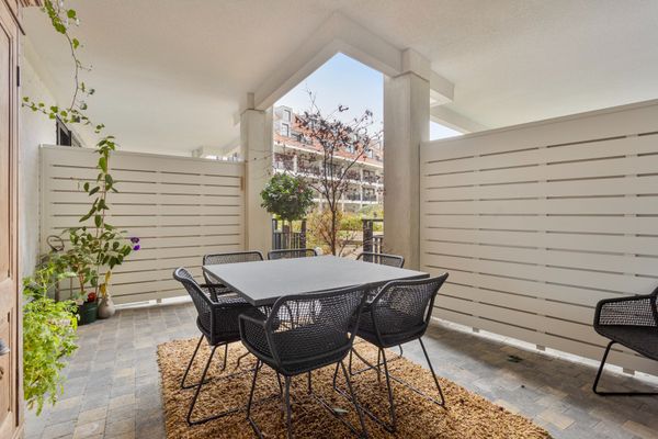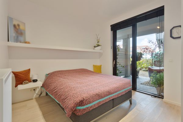 De ruime leefruimte, versterkt door hoge plafonds, biedt een gevoel van licht en openheid dat zeldzaam is. Het terras aan de achterzijde grenst direct aan de serene binnentuin, waardoor u optimaal kunt genieten van rust en privacy.