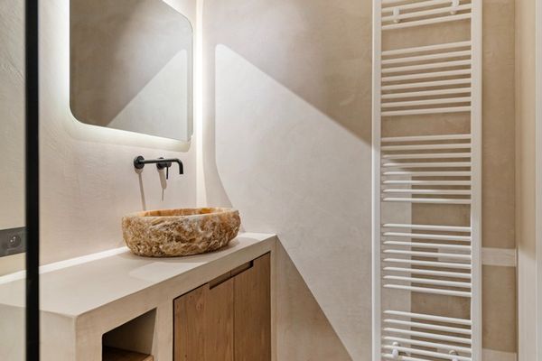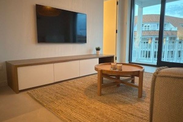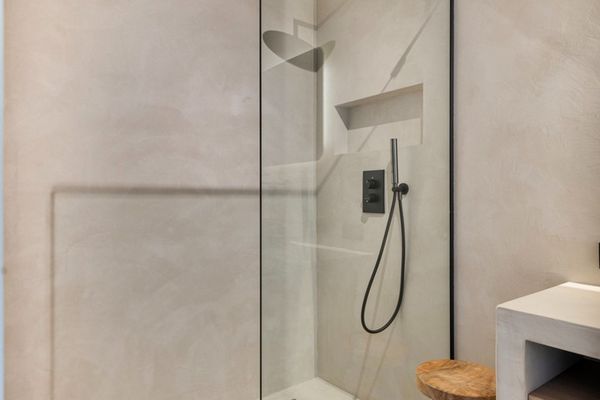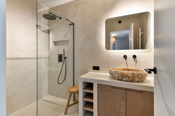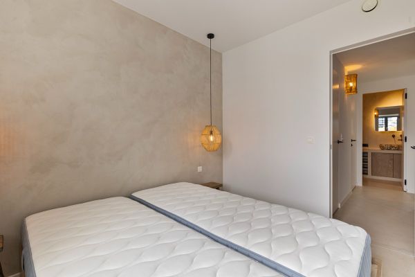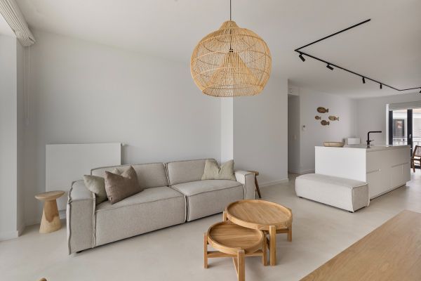 - Afwerking: Gietvloer en stijlvolle mediterrane sfeer doorheen het hele appartement.